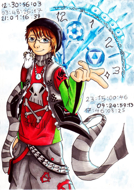 I love the splashes of colors! And his pose and expression together is good. And the Purple chain thingy is too cool