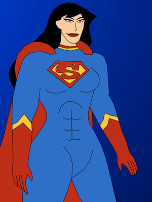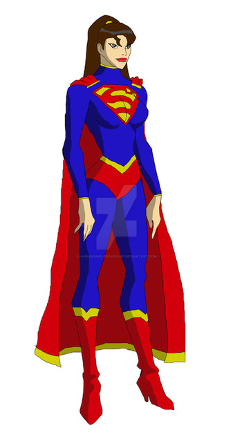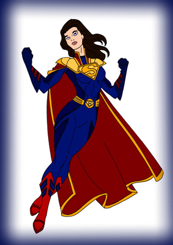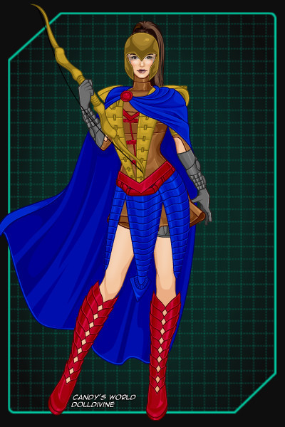 Costume: Amazonian/Kryptonian body armor, silver bracelets, blue cape, high boots