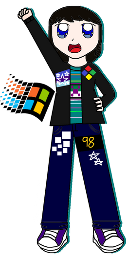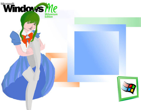 another square illustration! this time, I made my humanized version of Windows ME (Millennium Edition)!she was also known as 2000's younger sister.