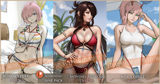 Sign up until September to get these rewards in HQ and alternative versions (includes nsfw)! Patrons will get a bonus in this month.
