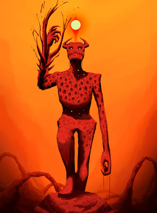 Interesting concept. At first glance, I thought this to be a depiction of a creation myth, but it is almost exactly the opposite.