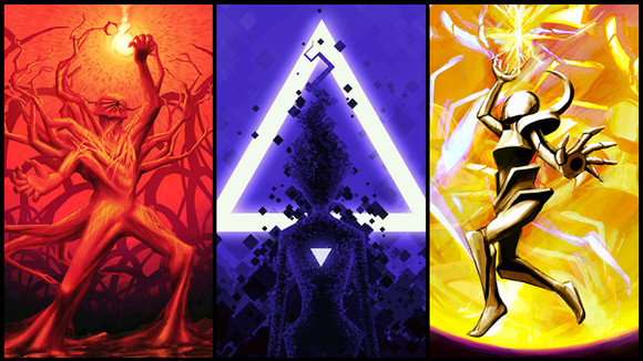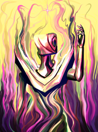 This is my favourite from your astral triptych. What I like about the visuals of this is especially the fact that while the figure takes center stage, its "alternate realities" / "alternate versions" / "alternate states of being" are being present as well in the background as echoes, so to speak. There's a rhythm to the entire painting because of that.