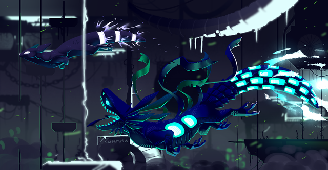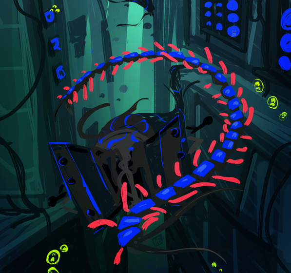 #array #blue #danger #digitalart #digitalillustration #digitalpainting #fanart #illustration #painting #rain #recursive #red #transform #world #rainworld #speedpaintvideo #slugcat #timelapsedrawing #art #coils #electricity #fanartdigital #zerogravity #illustrationdigital #rainworldgame #rain_world_game