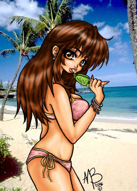 Here's a little bit of subtle (or maybe not-so-subtle) sexuality. There are select portions of this picture that I really like. I would've liked her hair to turn out a little bit better, but I just got sick of fiddling with it. The lineart for this picture can be found here:[link]