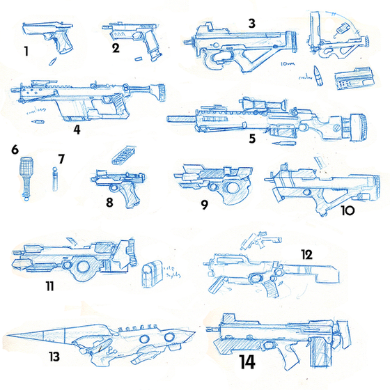 No, I'm not a gun freak even though I am fascinated by anything that is martial, but in a contemplative way.Did these weapon concepts for Paolo Parente's DUST game miniatures.