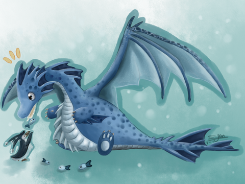 The coloring are beautiful. The red tail part might spark out a little and taking a bit too much focus for my liking. But some how it has to be there. Maybe a more neutral color that blend into the dragons color.
