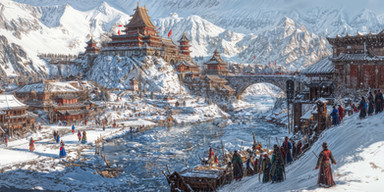 #digitalart #warrior #fantasyart #architecture #medieval #castle #checkpoint #flag #knight #lake #medievalfantasy #snow #winter