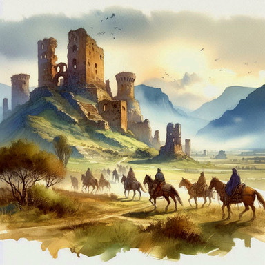 #digitalart #fantasyart #architecture #epic #medieval #castle #castleruins #horses #knight #lake #moutains #photo #sky #stone #trees #walk