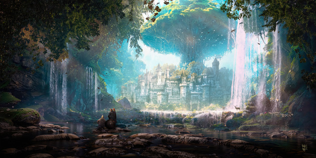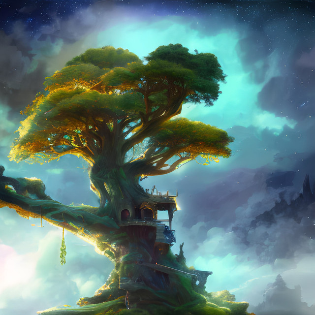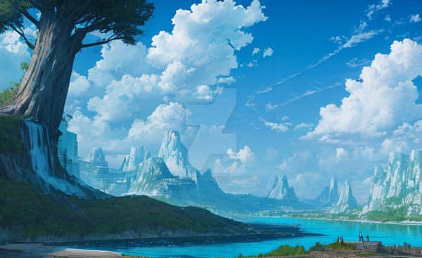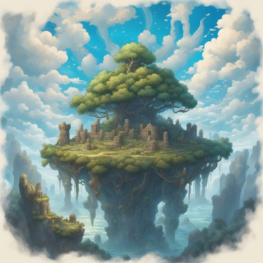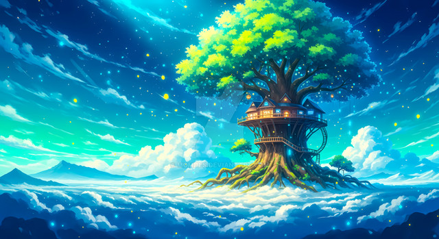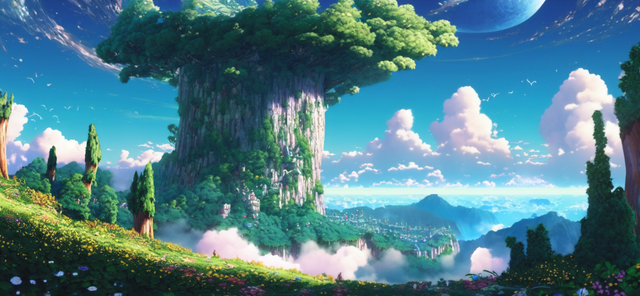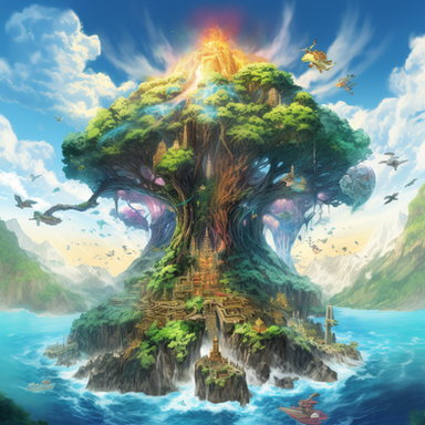 #anime #clouds #giant #island #life #tree #water #colorful #reflection