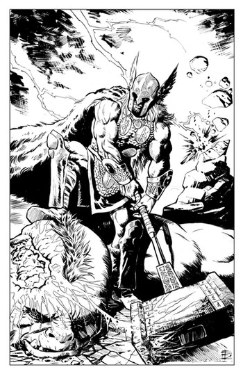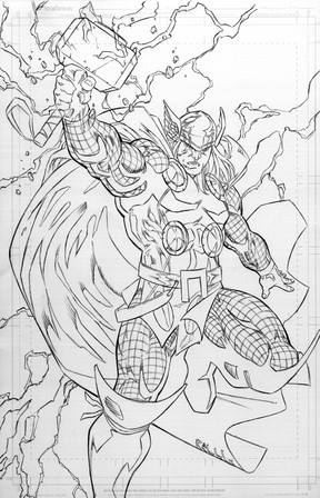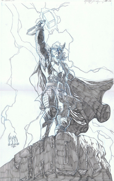 one fo the best thor pics i've ever seen. your line work is so tight. and the pose is just crazy. he looks like he could take out the whole world with one swing. hope it gets colored.