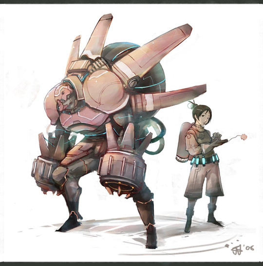 Concept art for a kind of cyborg. This creature is mostly a machine with flesh draped over it.Lineart, painted in photoshop, touched up in painter, and finished in photoshop.