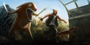 Here is my steampunk fairytale for Njoo's contest.I went with little red riding hood. Here lil red is being chased by the big bad wolf from hell. Enjoy!