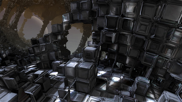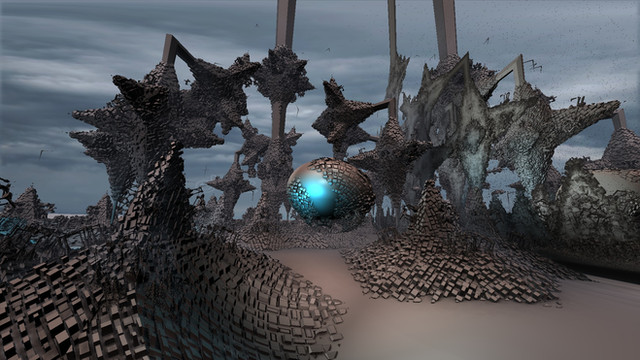 Nice blend with the background fractal and foreground base under the topmod object and subtle reflections