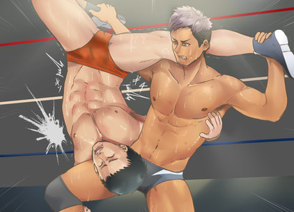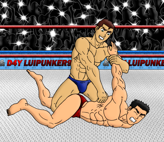 It was a mistake to step foot in the same ring as the self proclaimed Aussie Lion, who goes through an arsenal of holds with poor Goldie. He's literally wiping the floor with the Golden One's ever increasingly sweat soaked body. The blond fighter tried to hold on and hold out, but at this point he's just fighting back the urge to scream out his submission. He wouldn't want to give his opponent the satisfaction of hearing him say those words, hearing him submit.And the fight continues...