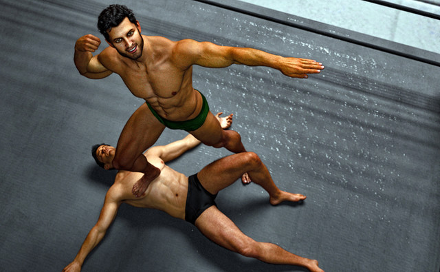 Soon Steve lost track of just how many times he's screamed out his submissions. He's been pinned in the most humiliating ways. Heck, he's even been knocked out a few times. After being put out by one of the many sleepers, his unconscious, sweat soaked body was tossed into the corner. Sliding down before getting trapped by the ropes in the corner.