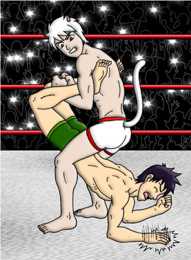 grrr -pounces- cmere musclehead!!! -laughs and chokeholds him-