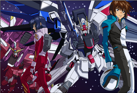 This is a pic of Kira and his new mobile suit, Gundam freedom. I don't know what else to say - just had difficulty drawing gundams 'cause they have loads of detailRelated content