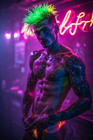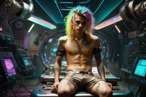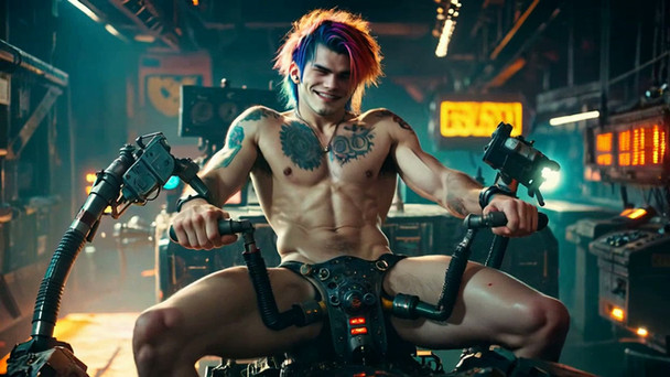 #cyberpunk #tattoo #scifi #attitude #gay #hotguys #lean #mohawk #perched #piercings #saboteur #servers #shirtless #spacepirates #spaceship #tattoos