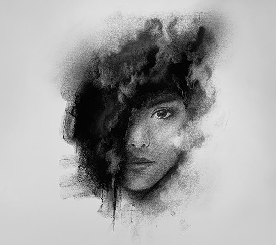 #ble #charcoal #drawing #face #figure #meditation #nirvana #portrait #sketch #blebis #impressionism