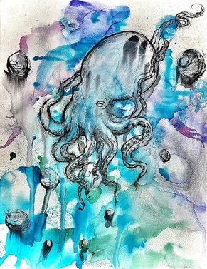 #animal #aquarelle #ble #creature #dark #darkart #dawing #fineart #illustration #ink #originalart #sketch #squid #watercolor #blebis #expressiveart #painting