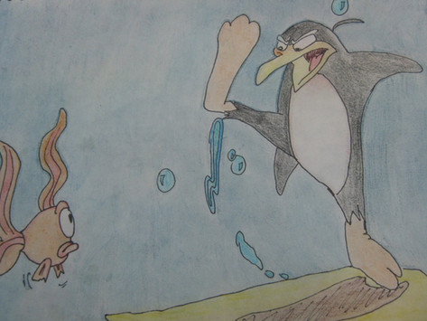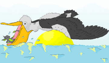 Our lovebirds are at the seaside trying to catch something to eat. The eagle however struggles with a fish too big for his body, so he's having a hard time flying. The falcon on the other side is suprised and shocked and doesn’t know if she should help her boyfriend, but that’s hard with feet only... bottom line: Don’t pick anything harder than you can actually handle!