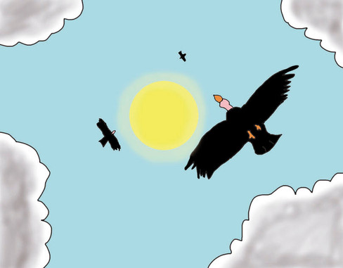 A redone version of a drawing from 1.5 years ago:Just Fred and Destiny racing towards the ground in a dive, side by side