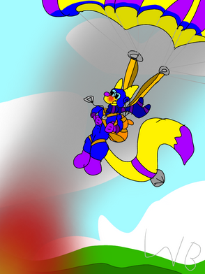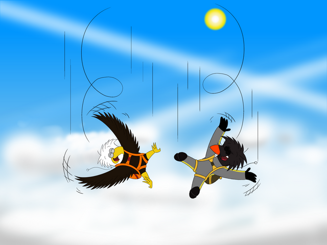 Sequel to this: www.deviantart.com/nickdoesart…Eventually, Nick let go of Fred and jumped off of Fred's back to freefall on his own, and Fred caught up to Nick very quickly! They're having a lot of fun together!