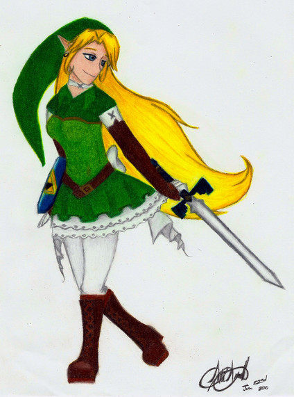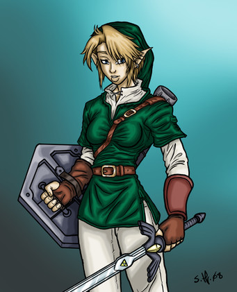 Link from the Legend of Zelda is a very effeminate character. Very androgynous, and there have been jokes as to his "blonde feathery hair", his "tunic(dress)" and his tights that he might be gay, or a woman.I figured what the hell, and drew him up as a chick.