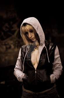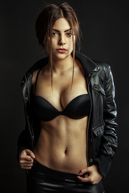I love the contrast in this picure, between the dessous and the leather jacket. And I don't know why, but I think her red lips are in a total contrast to her nose piercing.