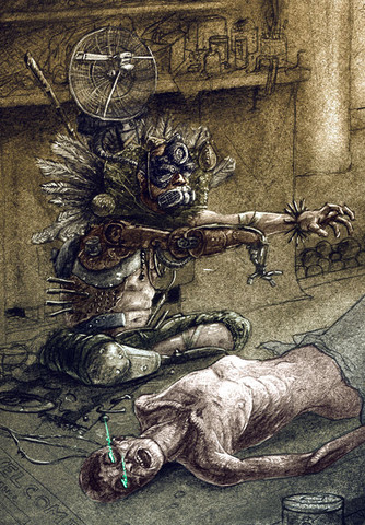 This is a quick painting of a cyborg.Acrylic
