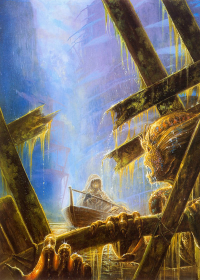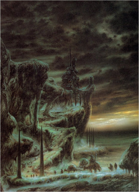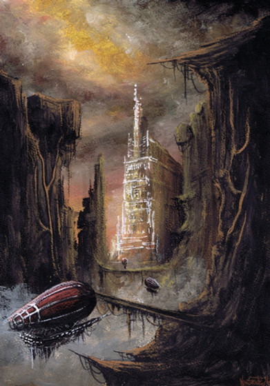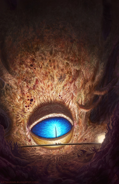 This piece was a school assignment to illustrate the cover of a HP Lovecraft story. This story is about a man who, while escaping in a liferaft in the Atlantic ocean, falls asleep and wakes to find himself in some hellish land more or less made of fish guts. Upon exploring he discovers a mysterious monolith and something much more terrifying!Acrylic