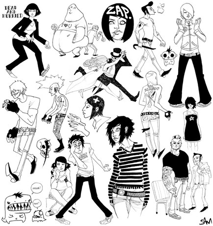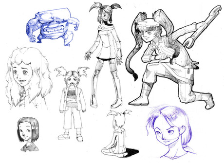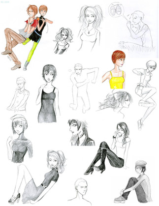 Characters roughs for my new comics project. I'm working on it now because 'Naïma' vol.1 is presently over and will be in store in septembre in France. This is a more adult oriented project and I'm sincerely happy because I'll work on it with someone I specially like.(Some attitudes are very freely inspired by DA peoples like Sue Anne Joe, especially the Spongebob one)