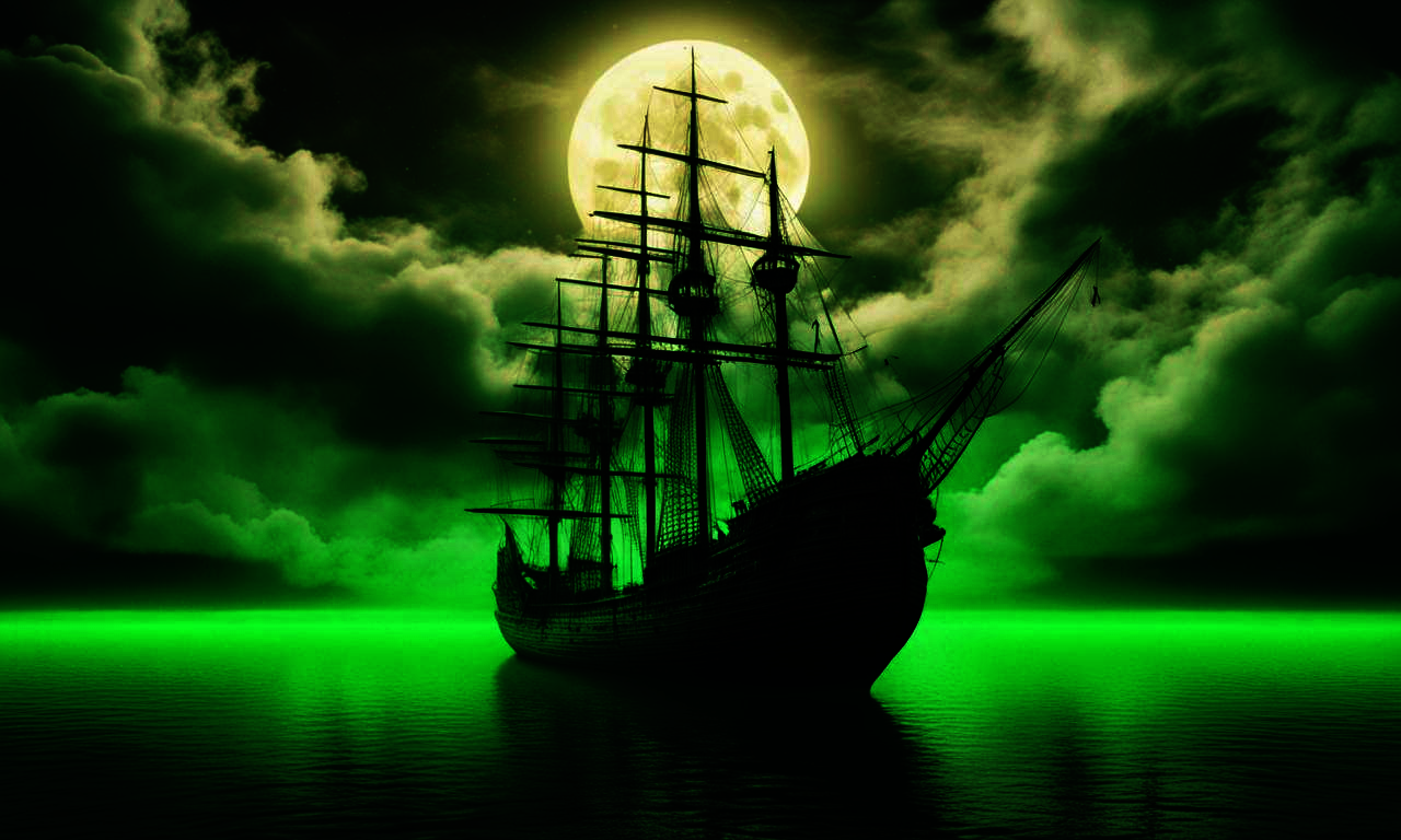 Drew2289 - Ghost ship neon green on a drip effect ocean moon [🤖]