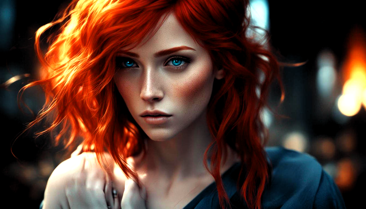 NicolasRain - A woman with striking red hair and piercing blue e [🤖]