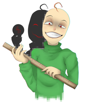 Well, even though this piece is rather simple I actually put... Way more thought on it than necessary. I wanted him to look ominous but not in a horrifying nor obvious way, and also what I would choose myself for what would be the title screen if the game was made by me. So that's what this is, a mockup title screen, I just didn't want to add the "Baldi's basics" and the "Start" anywhere because that would require even more thought, a new font, etc so... I just left it like this. I'm happy with the result, he looks happy and playful yet at the same time about ready to break the screen to get you. Or at least that's how I feel, maybe I failed