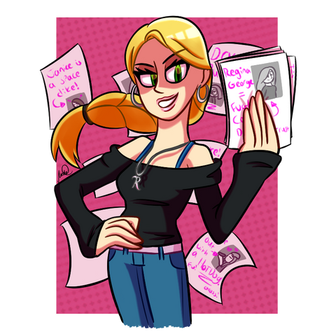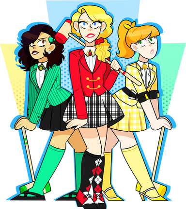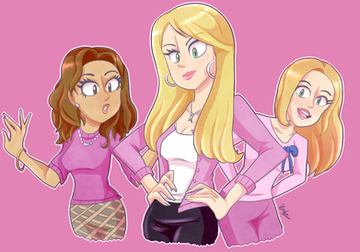 Hair color reminds me of Totally Spies and Powerpuff Girls.