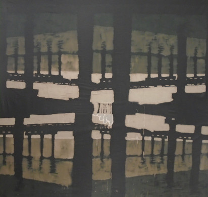 House paint, ink over roofing feltDimensions unknown (approx. 6 x 2.5 ft)