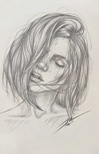 #beauty #black #blackandwhite #curlyhair #doodle #fashion #figure #freckles #hair #ink #pen #sketch #white #woman