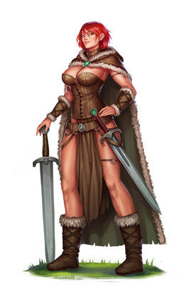 Our lady, despite what you said, is most certainly not a Pict. For one, "Astrid" is not a Pictish name, furthermore, if you actually observe her gear, it's not very ancient. The massive fuck-off paddle of a sword, which the strongest of men couldn't wield on their best day, rather less her, is not something that you'd find in Pictish society, even assuming that it's iron(which it couldn't be, it'd bet too soft considering the size), it just doesn't float. In addition, I've never actually seen a Pictish sword with fuller, this sword has one massive ass fuller(the groove going down the spine of the blade), and neither is the style of her fur gloves and boots - which, by the way, wouldn't protect jack shit - after all, the Heels weren't really a thing until the late 16th century.
