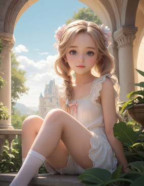 #brownhair #headband #plants #portrait #princess #younggirl #redandbluedress