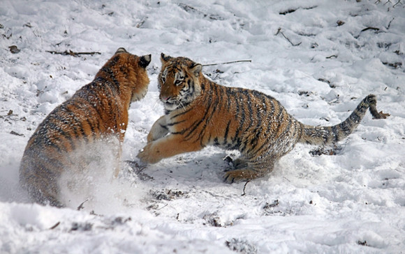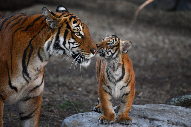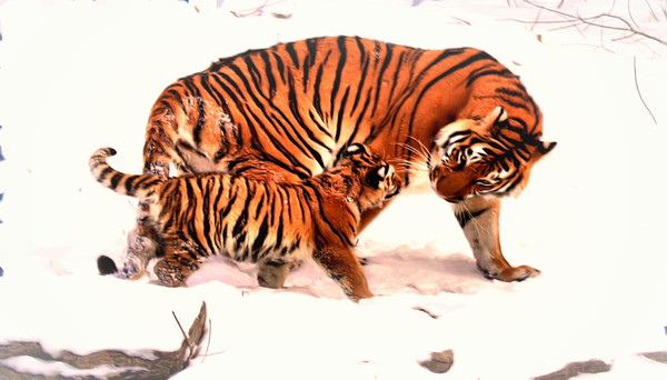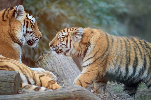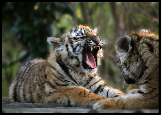 Young Tiger cub gets a blast from Mom. Calgary Zoo.Canon 7D, Tamron 70-300