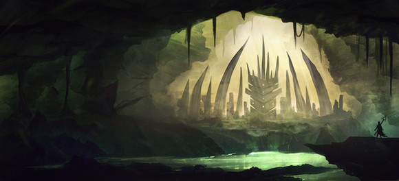 This painting is a portrayal of an ancient civilization that built their sanctuary in a cave to protect themselves from the harsh winter climate. Being able to adapt to the never-ending cold winter, the people learned to equip themselves with gigantic creature hunting skills. The skills enable them to defend themselves from the attacks of large, ferocious creatures and at the same time, provide a solution to lack of food source that they face due to the harsh winter.