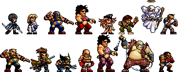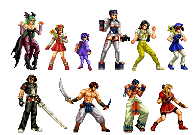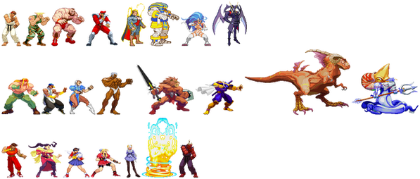Bomberman, Bowser, Captain America, Captain Falcon, Chrono, Chun-Li, Donkey Kong, Earthworm Jim, Filia, Ganondorf, The Hulk, Jazz Jackrabbit, Kefka, King K. Rool, Kirby, Link, Mario, Megaman, Peach, Zelda, Psylocke, Rayman, Rocket Knight, Ryu, Samus, Zero Suit Samus, Scorpion, Sephiroth, Simon Belmont, Sonic, Storm, Toad, Wario.