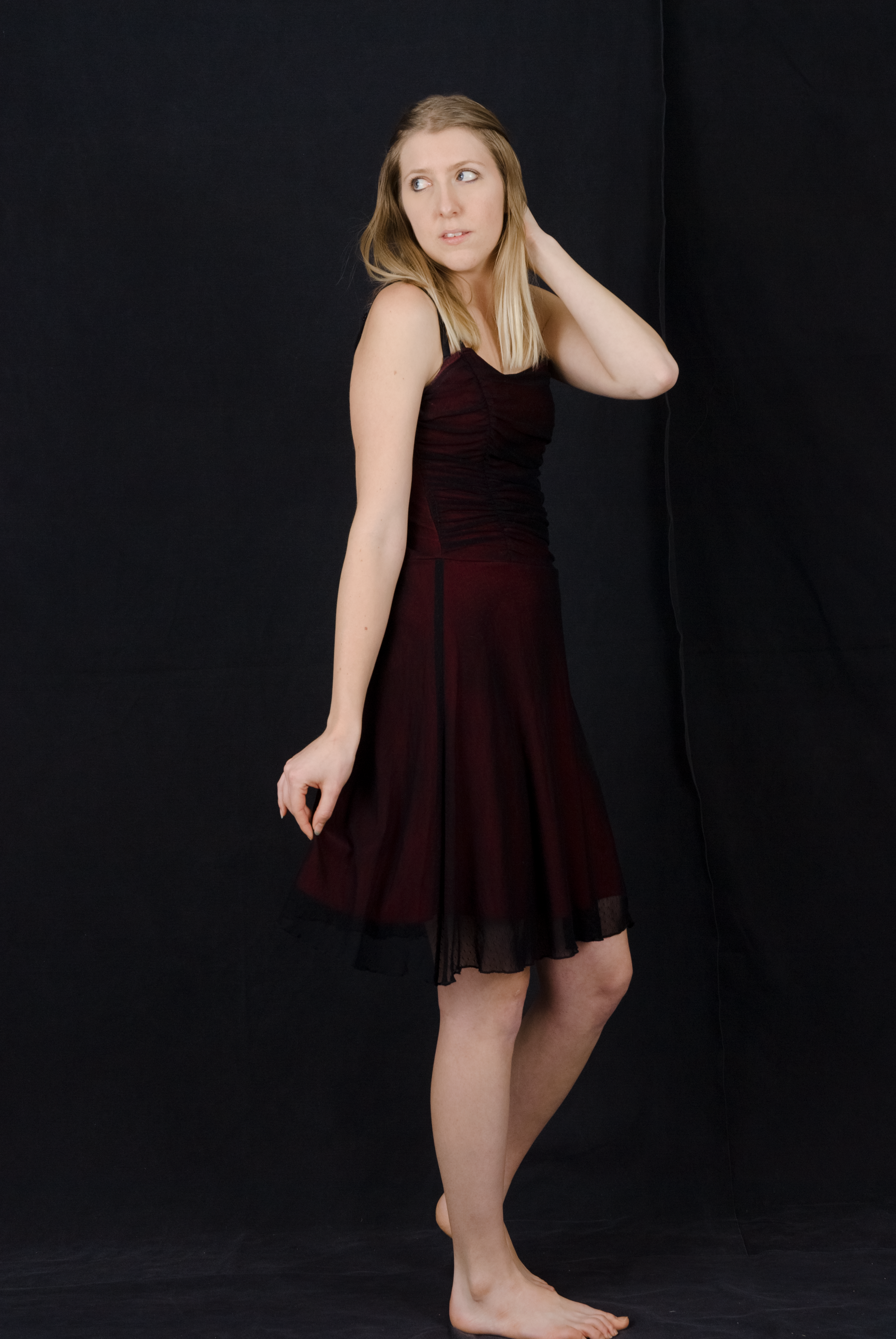 You have great comments - but one problem is the dress would look only black to on this shot - I will not be able to repeat the shot at least for a month or more. The model is over 6 hours away. I agree definately the I should play with the highlight boom more. I appreciate your comments and suggestions!!!