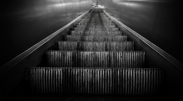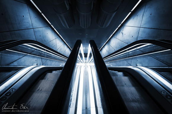 GefΓ€llt mir sehr gut, allerdings hast du bei der vertikalen Spiegelung nicht ganz aufgepasst, die Rolltreppenstufen haben in der Mitte einen Knick