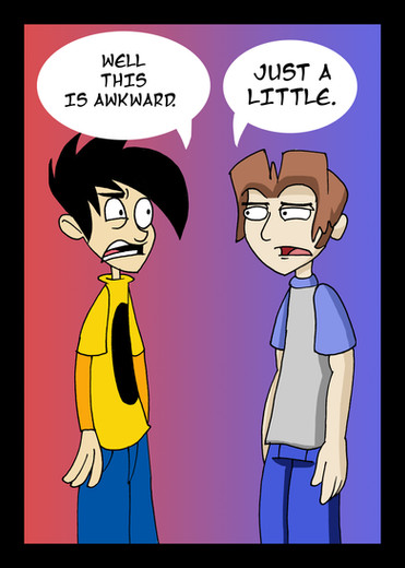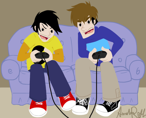 Just to clarify, Gabe is the guy with the black hair, in the Pac-Man tee. Tycho has the brown hair and the blue striped sweater.
