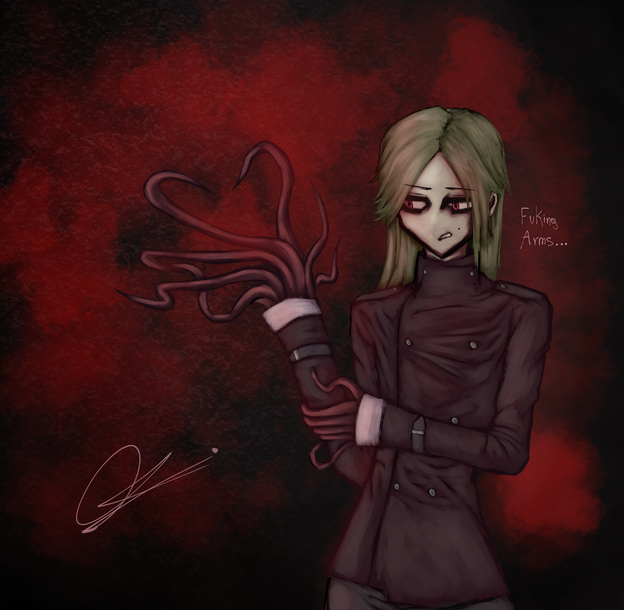 Creepy little parasite infested girl with the ability to make blade tentacles out of her own body.