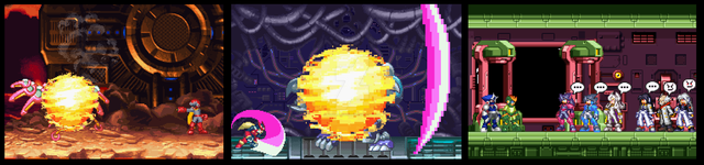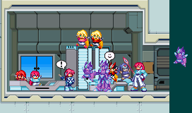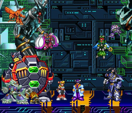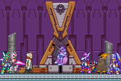 Megaman, Giro, Protoman, Vent, Bass, Aile, Zero, Megaman X, Axel, Omega Zero, Harpuia, Copy X, Leviathan, Fefnir, Phantom, Prometheus, Pandora, Grey, Ashe, Vile and the throne room background are all (c) of Capcom