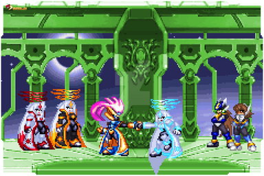 Made this out of boredom, showing the four different generations of the Megaman universe (EXE, Legends and Starforce not included).Zero-styled Megaman, Zero-styled Protoman, Nightmare Zero MKII, Giro's new look, Custom harpuia pose, Zero-styled X-series Zero, Omega MKVII (Zorren) and custom backgrounds are (c) of myself, a.k.a.