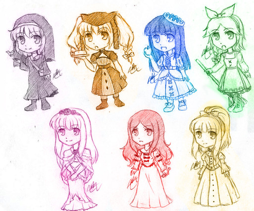 Designed some lolita dresses for friends' EfN characters (even though most of them probably won't be caught dead wearing those lolol )I tried to mirror the dresses off of their original outfits IT WAS FUN.